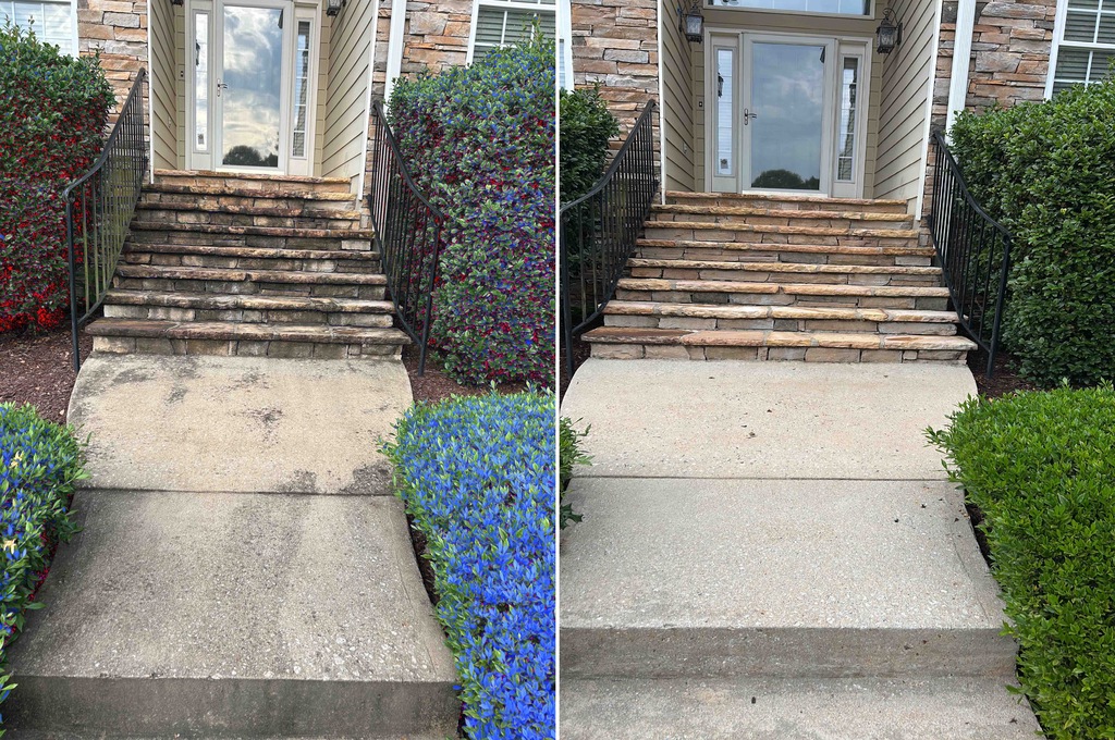 We just wrapped up a great exterior cleaning project in Simpsonville, SC! This job included a full house wash, window cleaning, flagstone patio washing, driveway cleaning, and walkway cleaning.